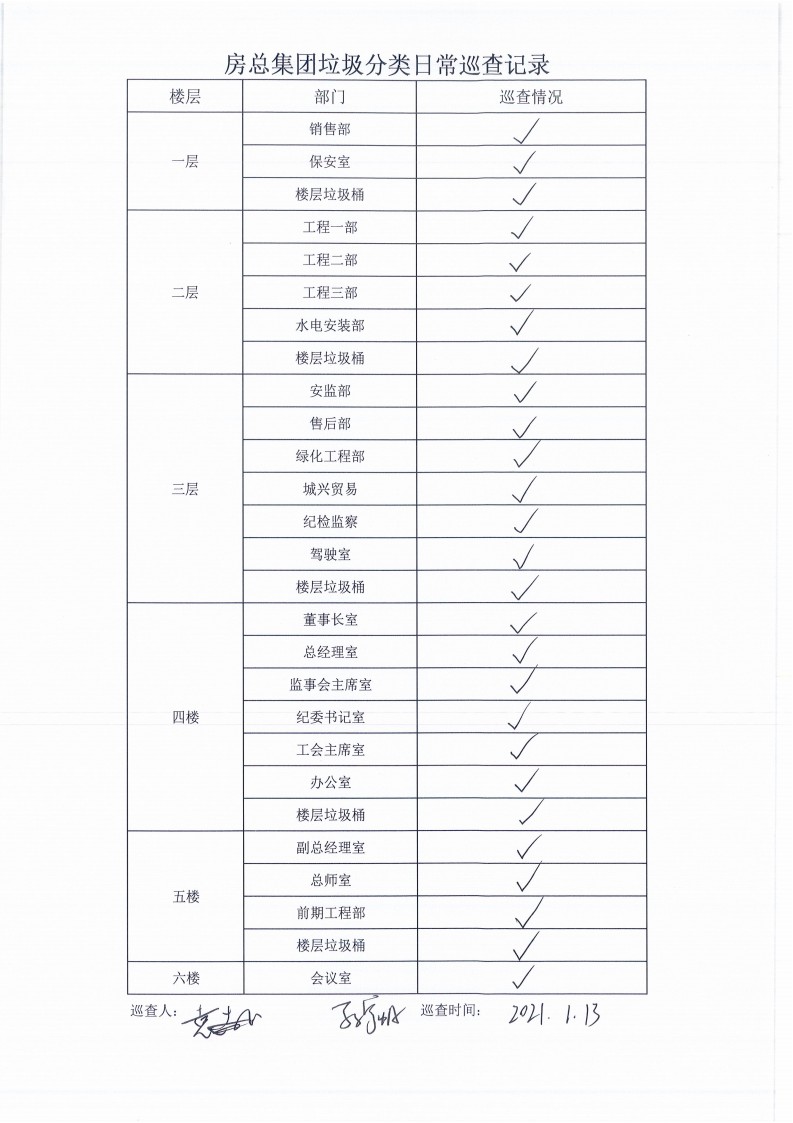 房總集團垃圾分類日常巡查記錄