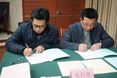 ▲ 黨委書記、董事長費子明代表公司領導班子與各部門、分公司簽訂了2018年度工作目標、安全生產與廉政建設的目標責任書。