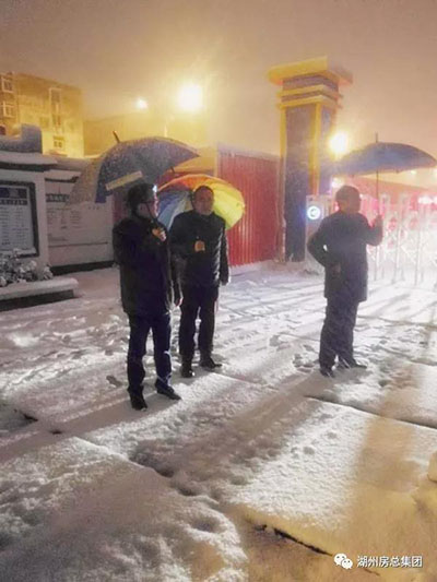 1月25日晚,公司黨委書記、董事長費子明、副總經理朱春根冒雪帶隊視察公司辦公大樓及各項目現場抗雪防凍值班工作。