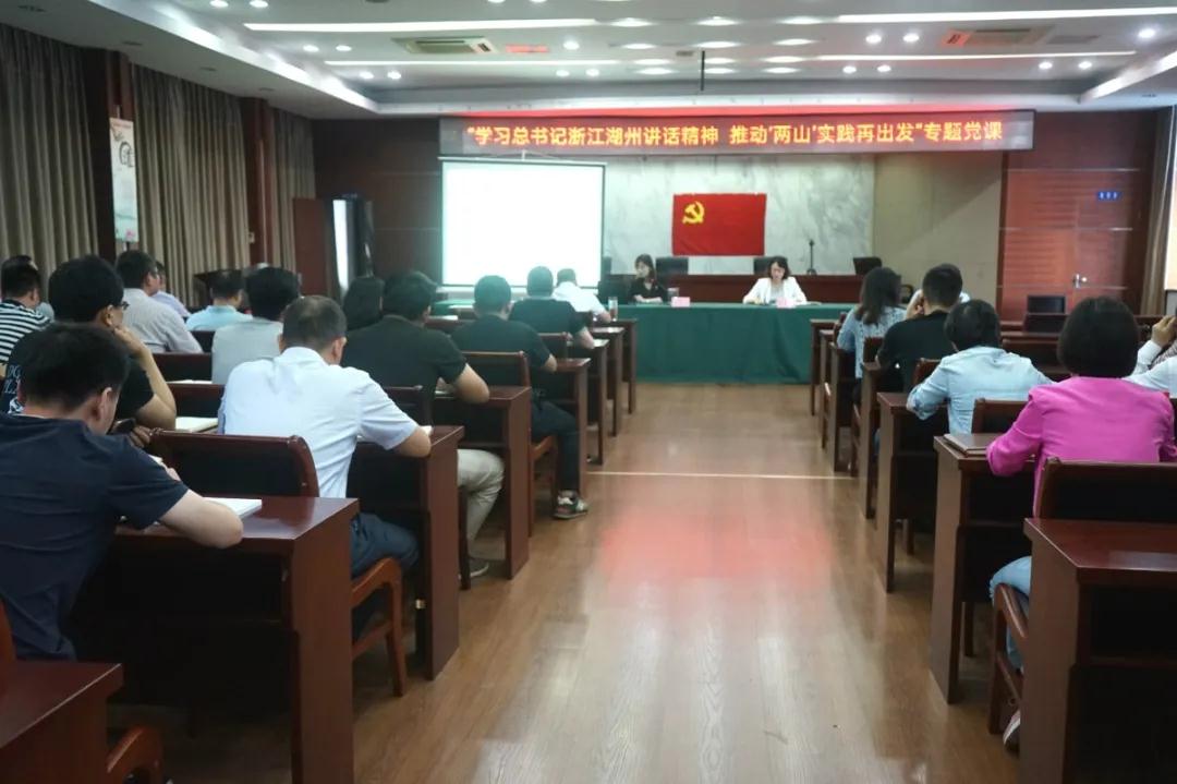 6月22日下午,公司特邀湖州市委黨校、浙江生態文明干部學院教育長,副教授沈佳文教授授課,公司黨員干部、積極分子共計70余人參加學習。