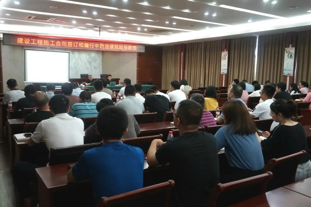 為進一步提高公司在建設工程施工合同簽訂、履行過程中法律風險的識別與防范能力,增強合同的監管監控力度,根據“清廉講堂”課程安排,7月30日下午,公司邀請了法律顧問舒文建就建設工程施工合同簽訂和履行中的法律風險與防范作專題講座。公司全體中層干部、營銷、財務和工程項目管理人員共計60余人參加會議。