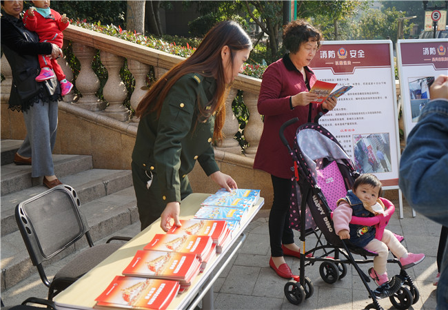 消防大隊在活動現場設置了大量的消防安全案例展板,內容包括:“商市場典型火災案例”、“電動車起火的預防措施”、“小商品市場火災案例”、“吳興出租房案例”、“以案說法”等,同時向居民發放《社區消防安全文明行為指導手冊》、《消防安全知識讀本》等宣傳材料進一步提高居民消防安全意識和事故防范意識。