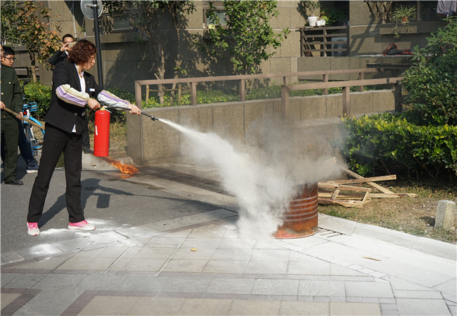 隨后,消防大隊的工作人員現場進行了詳細生動的消防器材使用教學,物業工作人員及小區居民踴躍參與學習滅火器等消防器材的正確使用,并進行了滅 火演練,現場氣氛活躍。