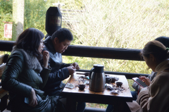 午后,車赴大唐貢茶院,這是中國(guó)歷史上第一座專門(mén)為朝廷加工茶葉的——“皇家茶廠”。在參觀中了解了貢茶院的興廢歷史、熟知了“茶圣”陸羽的故事、學(xué)習(xí)了貢茶知識(shí),收獲頗豐。登上陸羽閣,看古典茶藝表演,聞八百年茶香,在竹林清風(fēng)間感受禪茶文化,歡聲笑語(yǔ)連成一片。