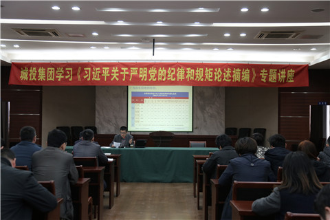 為進一步認識加強黨的紀律建設的極端重要性,準確把握紀律建設的基本要求,根據上級學習《論述摘編》通知的有關要求,3月30日下午,城投集團公司在六樓會議室舉行了學習《習近平關于嚴明黨的紀律和規矩論述摘編》專題講座。講座邀請了市紀委案管室鐘新春主任前來授課,公司領導、中層干部和重點崗位專業技術人員70多人參加了本次學習。