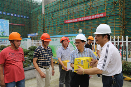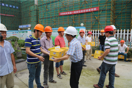 7月23日上午,市總工會黨組副書記王則康率權(quán)保部長王錫榮、副部長孫曉嵐副部長等市總慰問組,在局工會副主任盧美月、市城投集團公司工會主席沈俊、副總經(jīng)理周紅衛(wèi)的陪同下,來到金田家園送清涼,慰問一線民工,王書記一行將40箱飲料一一送到民工手中,送去清涼的同時向大家的不辭辛苦、默默奉獻表示了感謝,并提醒他們一定要適當調(diào)整、注意休息。