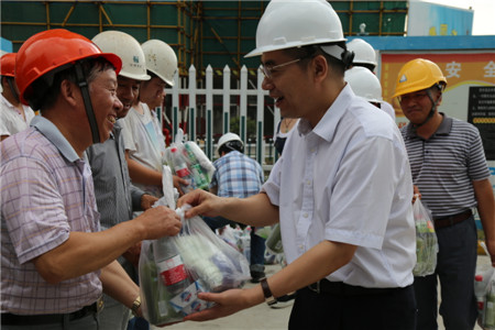 李全明局長指出我市正處于夏季高溫天氣,一線施工人員在高溫中作業較為辛苦。叮囑現場項目經理和管理人員,要根據夏季特點強化安全意識,更合理的安排好工作、飲食和休息時間,切實做好高溫期間的防暑降溫工作。